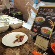 温泉区有烧烤,宵夜时间我们也点了一些,但是苦愁没地方享用,温泉区11点就打烊了,于是我鼓足勇气去和前厅的小哥哥申请,没想到小哥哥又帅又好的说,可以,你们找个有灯光的地方享用,注意卫生就好,这下我们太开心了,毕竟深夜走出去外面还是担心安全问题,妈妈们一起畅聊,喝喝小酒和吃些烧烤,满足了我们许久以来未有的时光。谢谢