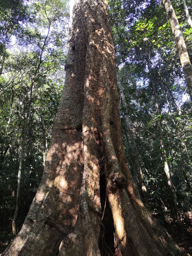 鸣凤谷是尖峰岭较有代表性、较原始的热带雨林沟谷,全长2.5公里,顺着栈道走一圈大概一两个小时,并不会太累。这里因众多鸟类祥集此地而得名,有“千年古树”、“大板根”等热带雨林独特景观,让人惊叹不已。进入景区,顺着修葺好的木栅道穿行,一开始还能看到蓝天,越往里走、树木越多也越茂密,天空被完全遮挡,几乎看不见阳光,只有随意生长的树枝与树枝交缠在一起,展现了自然的粗犷豪放。