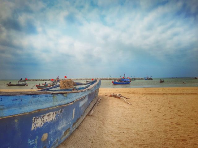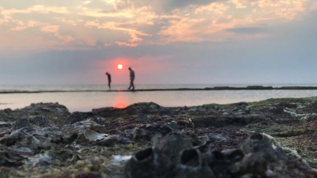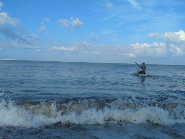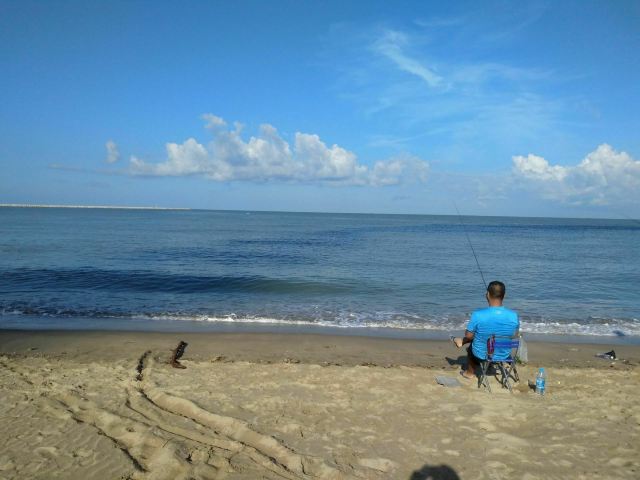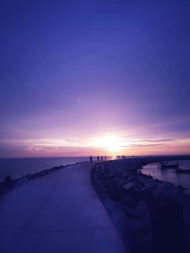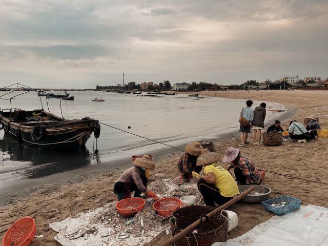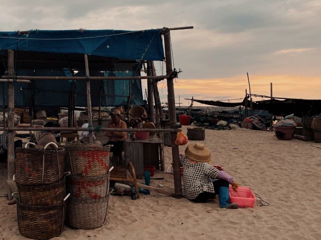 白天的时候则是非常安静的海,加上坐着一个泡沫箱就可以出海捕鱼的渔民,以及坐在海边安静垂钓的钓鱼爱好者。