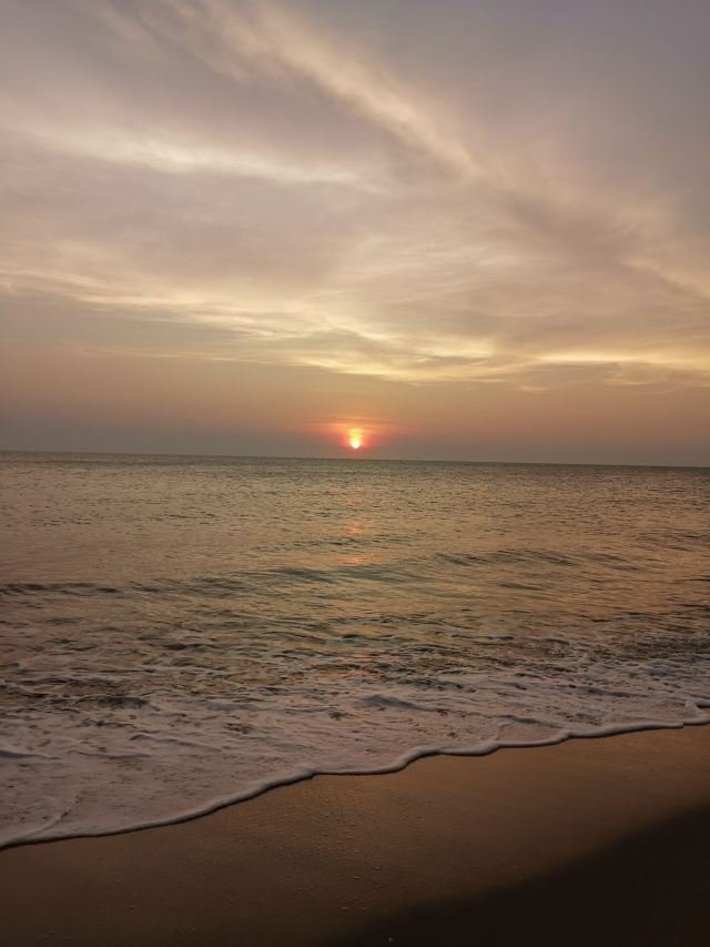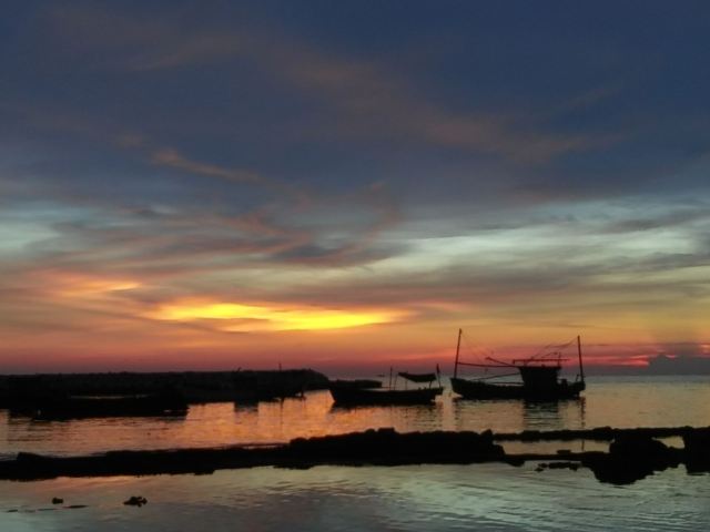 4分 满意这边没有非常细的沙滩,也没有非常好的水质,但是有的却是一份安静以及美丽的晚霞
