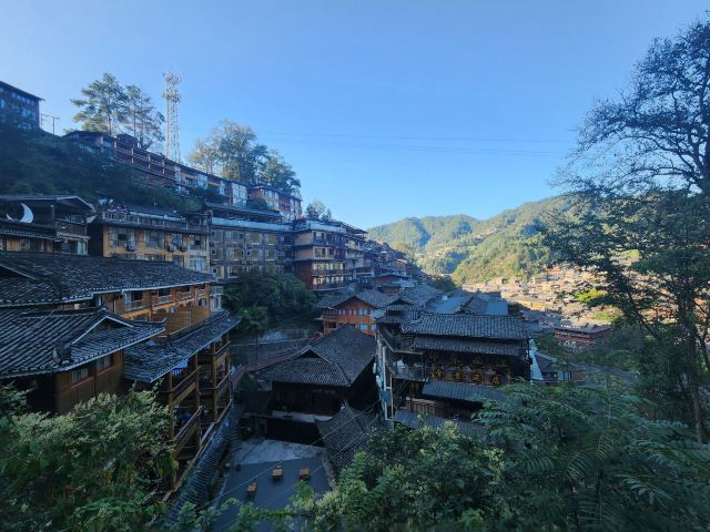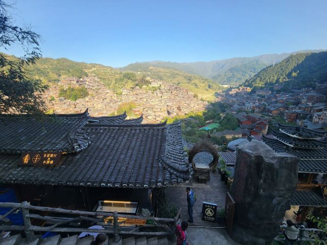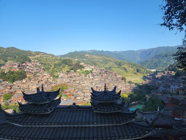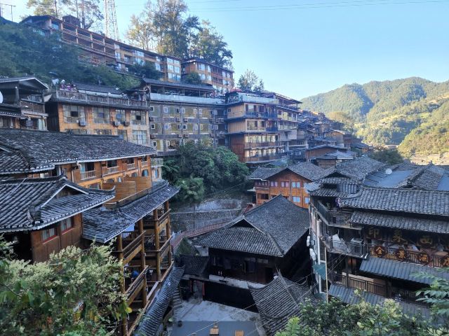 登高远眺苗寨全景,是必须完成的任务;最佳地点,是苗寨西南侧高坡上的观景台。