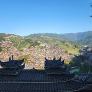 5分 超棒西江千户苗寨观景台,是看西江苗寨全景的最好地方。从高空中看,对面山头密密麻麻的吊脚楼,蔚为壮观,非常震撼。看着远处的高山梯田,寻找着自己所住的苗寨,会发现很难找到有千戸相同的吊脚楼。
