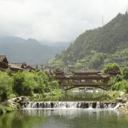 苗寨,只要有流水,必有亭廊结构的风雨桥,既有便利交通、遮风挡雨的功能,更有关风蓄气、改善风水的讲究。