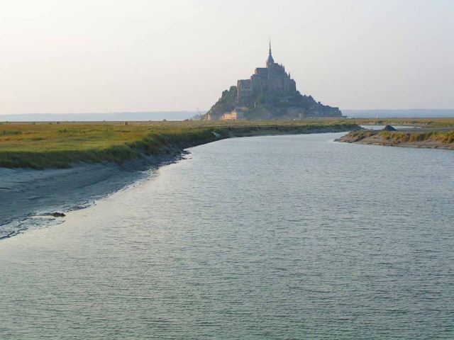 圣米歇尔山所在的小岛呈圆锥形排开,由耸立的花岗石构成。它所在的圣马洛海湾是一片滩涂,潮汐不断地将沉积物冲上岸,使得圣米歇尔山成为了一座孤岛,只有涨潮时才浮出海面,颇具神秘色彩。
