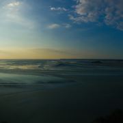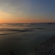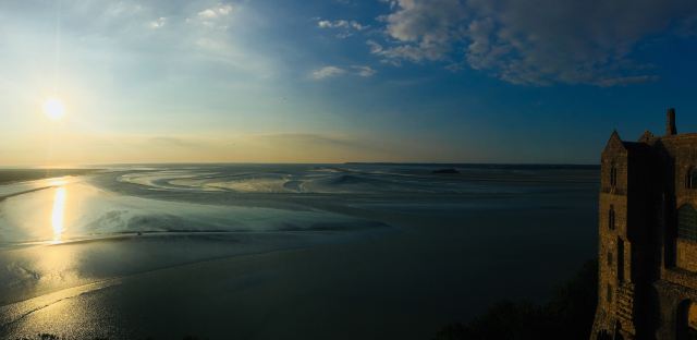 通常涨潮的速度相当于一个人的步行速度—每小时4公里,顺风时速度则增加到每小时30公里。每逢傍晚,大西洋的潮水有如万马奔腾般扑过来,将山边的流沙淹没,圣山顿时变成海洋。涨潮6小时之后方才退潮,海湾的退潮往往也开始得非常突然,也许几分钟前还是一望无际深不可测的大海,突然之间海水退向远处,满眼望去已是裸露的海滩和海滩上颜色很特别的流沙。