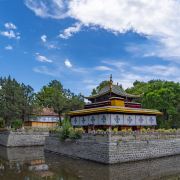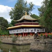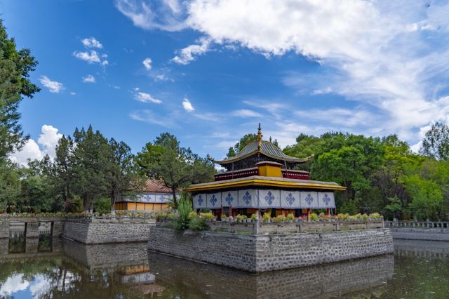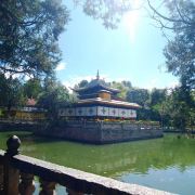 微信小程序湖心宫,位于西藏拉萨罗布林卡内,在达旦明久颇章(新宫)对面。这里古木参天,芳草遍地,宫殿、凉亭、水榭、回廊布设紧凑,水池、草坪、林木、房舍相得益彰,亭台楼阁几乎完全是汉族的建筑风格,走进这里,仿佛走进了苏州园林。