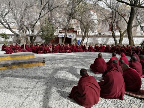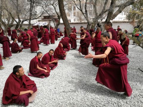 微信小程序色拉寺位于拉萨北郊色拉乌孜山下,为拉萨三大寺之一,是藏区规模第二大的寺院。寺内建筑都是藏式风格,寺院大殿金碧辉煌,而且非常宏大。寺院内供奉了很多佛像,还藏有大量的经书、精美唐卡、堆绣、壁画等名贵的艺术珍品,参拜或是观赏都是不错的选择。著名的辩经:色拉寺的辩经一直在藏区闻名,也是来到色拉寺游览的重点。色拉寺的辩经仪式在寺内北边的辩经场进行,每天下午三点开始,持续到五点,其中周日和特殊节日时没有,需要注意。辩经时,僧人们往往一个席地而坐,另一个站在对面,动作夸张的辩论经文,十分有趣。赏色拉寺建筑:观赏色拉寺的建筑佛堂可以步行,整个寺院的周长约有1.5公里,色拉寺的布局是以措钦大殿为中心,周围散布着各大扎仓的众多建筑。与内地汉传佛教的建筑不同,色拉寺并非中轴对称布局,而是分散的错落在山间,殿宇中有名的就是马头明王殿和措钦大殿,可以重点参观。马头明王殿中供奉着色拉寺有名的马头明王像,马头明王是藏传佛教密宗的护法神,具有强大法力可以驱邪解难。传说这一尊马头明王神像是藏传佛教格鲁派的创始人宗喀巴大师在散步时听到了马嘶鸣的声音,沿着声音向地下挖掘而出的,所以在藏传佛教的传说中具有强大的祛邪法力。这里也是信众们参拜色拉寺的重点,可以加入到信徒的队伍中参拜一下,为自己祈福消灾。中心的措钦大殿则是色拉寺较大的建筑,由108根大柱子支撑,在举行宗教仪式的时候,可以容纳8000余名僧人。殿内供奉着寺院创始人释迦益西的塑像,塑像头顶的帽子十分独特,上面书写梵文,这顶帽子是他在内地讲经时明朝永乐皇帝亲自赐予的,可以亲自前去发现一下。登后山看拉萨全景色拉寺的后山位置较高,山顶可以观看拉萨市的全景,是爱好爬山者们的胜地。山相对高度约有500米,爬山需要4小时左右,需要一定体力,不过沿着山路稍微上升一点回望拉萨市区视野就十分开阔,体力不好或刚到拉萨容易高反的游客建议不用上到山顶。