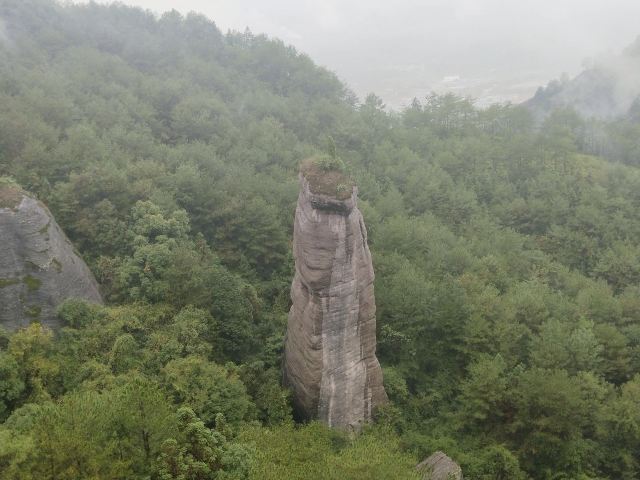 冠豸山长寿峰是一根硕大的圆柱形石柱,矗立在冠豸山顶长寿亭下的峡谷中,直指苍穹,充盈着阳刚之气,给人以奋进、拼搏的无限遐想。