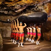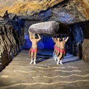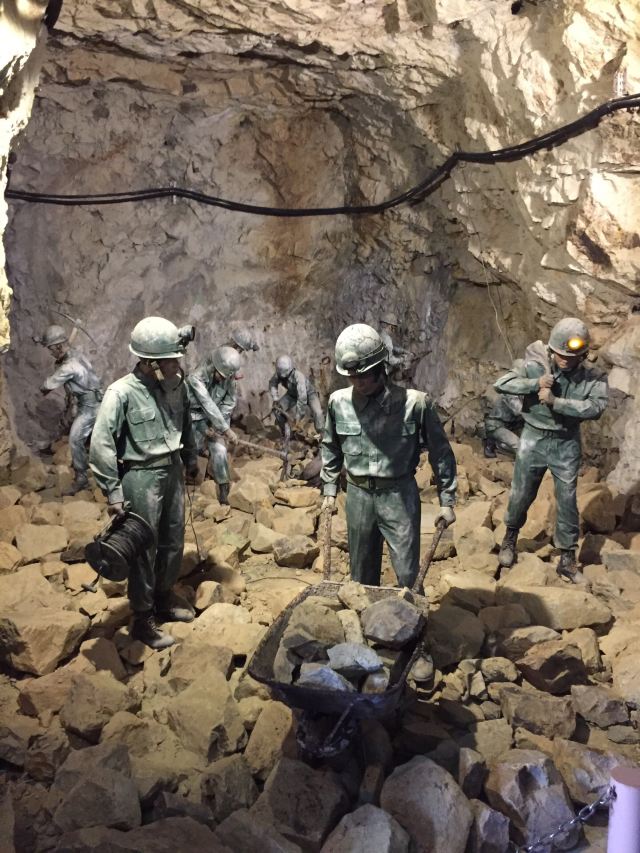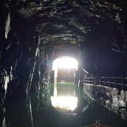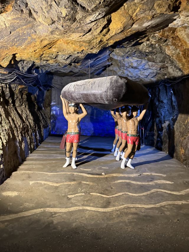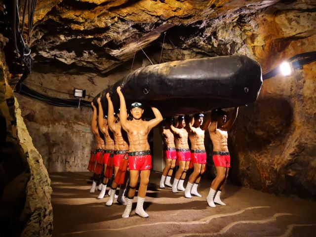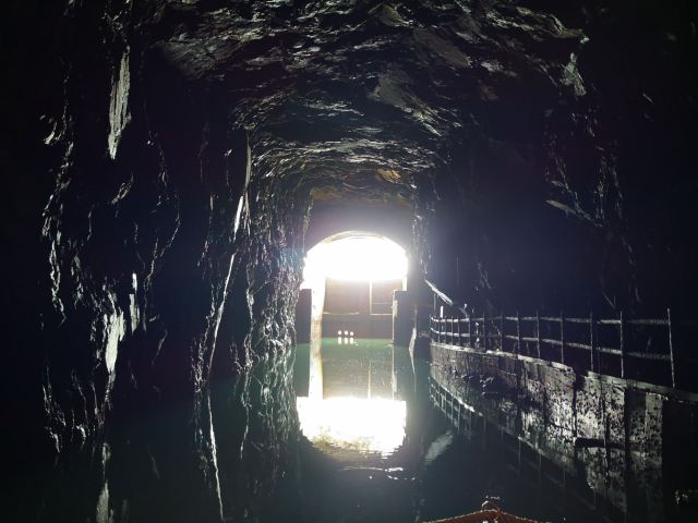坑道内非常知名的景观就是岩壁的水中倒影,投射在平静无波的水面后,形成另一座坑道,加深坑道高度的错觉,相当壮观;岩壁上还有许多当年以空压机打出的火药洞,显见当时开凿的难度。游客可沿着岩壁搭筑长约700米的步道行走,绕行一周约需30分钟。