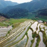 欧家梯田位于广东省清远市连山壮族瑶族自治县太保镇欧家村,地处被誉为“广东岭南屋脊”的连山较高的山峰大雾山麓,海拔400-800米之间,一年四季气候分明,年平均气温为18.9°。它四面环山,森林覆盖率达百分之93,负离子含量很高,是氤氲天地山水灵气的天然森林大氧吧。这里春回醉山花,夏至山峦翠,秋来金穗灿,冬披银毯妆,是四季皆宜的旅游度假之地。
