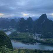 去渡口的摆渡车属于私人的,尽量搞价,这个需要看个人能力。这也是我对阳朔,对相公山不满意的点,公共服务近乎没有。很有幸,遇到的私人摆渡车司机不错,一路漂移动感音乐穿梭在崇山峻岭之间,遇到景色优美的打卡地还主动停车提醒我们拍照并做景点介绍,算是为阴天看不到日出毫无生趣的相公山之旅平添了几分乐趣