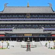 广佑寺大雄宝殿是目前世界上最大的佛教殿宇,是我国辽代艺术的典范。大雄宝殿中供奉的释迦牟尼佛的佛像通体贴金,是目前世界上殿内最大的木质坐像。大殿内还有精美的浮雕和群雕。