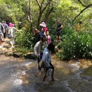 水上森林分为上、中、下三段,可供游客步行观赏的上段和下段,婉延的步道近2公里长。漫步其间,人在石上走、水在石上流、树在石上秀,抬头-大树虬劲青翠,低头-小溪流水青苔,怎一个爽字了得…