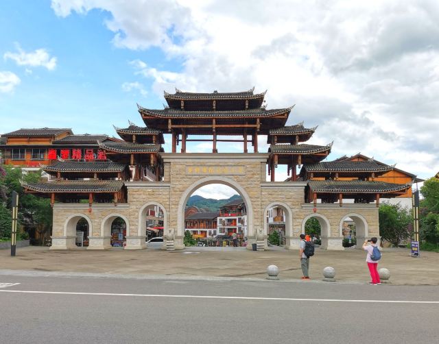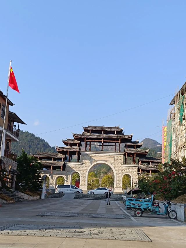 旅游去到贵州,这一站来到了大小七孔景区,我们中午先在景区停车场对面的一排餐厅里,随便找了一家吃个饭再进景区,然后看到了这一个风情小镇。它有两个大牌坊,正对面大小七孔景区的停车场,如果从第二排餐厅那里过去,也可以直接有门口通往小镇,小镇的建筑看上去都挺新的,还有一些地方堆着沙石,好像还没有完全弄好似的。小镇里面可以说到处都是客栈,外围一圈是餐厅,客栈很多都没有开门,也许是淡季吧,住房的供应量充足,也不需要住到这边来了,所以他们也就没有开门做生意了,正常来说客栈里面有没有饭吃就不知道了。
