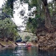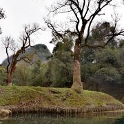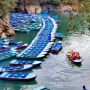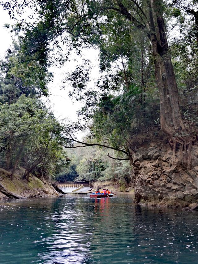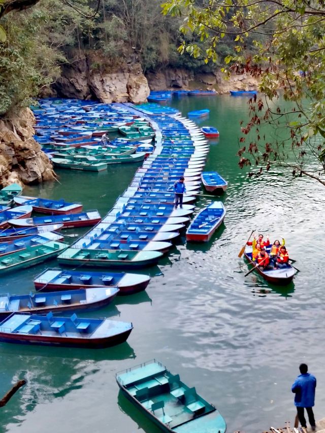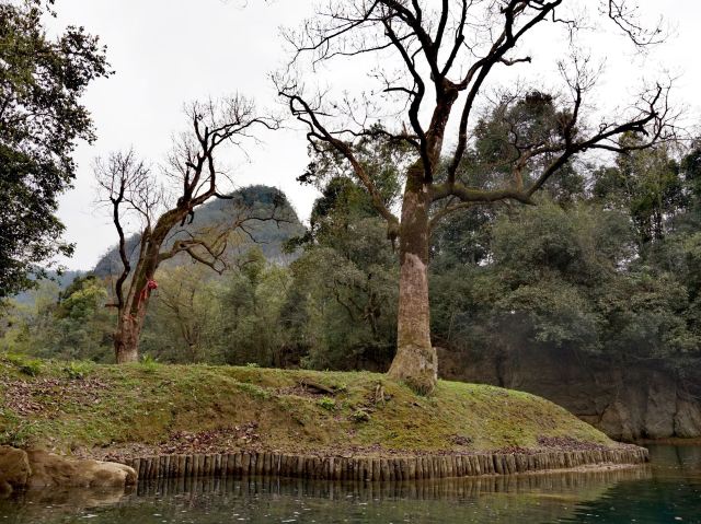 荡起双桨,轻舟启航,平静的湖面划出了一道道涟漪,航道时而宽阔、时而迷宫;清澈的湖水折射着一缕缕阳光,色彩时而宝蓝、时而翠绿;蜿蜒的湖岸铺展着一片片仙境,眼前时而怪石、时而巨树…最不该错过的,是湖心岛上的鸳鸯树和她那传说中的爱情故事。