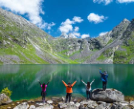 游客可在毕棚沟景区的月亮湾下电瓶车后,沿木栈道漫步环绕磐羊湖一周,欣赏海拔约3600米的清澈湖水及四周雪山冰川风光。