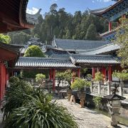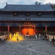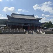 微信小程序木府位于丽江古城南部,是历代丽江木氏土司的府邸,建筑有了明代中原建筑风格和白族、纳西族的工艺,精美壮观,徐霞客曾赞“宫室之丽,堪比帝王”。如今木府已是古城的一座标志,吸引无数游客来此欣赏。木府虽是土司王府,但宫室之瑰丽,不逊皇家,据说当年既是“仿紫禁城而建”,鼎盛时期,有宫舍100多间。沿着关门口的石板路走进去,首先映入眼帘的是“天雨流芳”木牌坊,“天雨流芳”是纳西语“读书去吧”的谐音,可见木氏土司还是很重视文化教育。转过木牌坊,右手边是一座雕工精美的石牌坊,上书“忠义”二字。当年的这座石牌坊结构宏伟雕工精湛,民间有“大理三塔寺,丽江石牌坊”的赞誉。迈进木府庄严的红色的大门,中轴线上依次排列着议事厅、万卷楼、护法殿、光碧楼、玉音楼、三清殿等建筑,,无不精美绝伦。中轴线两侧建有配殿、阁楼、过街楼、家院、官驿、长廊等共160多间屋舍,高低错落,气势磅礴,再现了当年丽江土司府的风范。议事厅端庄大气,气势恢弘,是丽江木氏土司议政之处;万卷楼,是木氏土司推崇文化的表现,据说当年内藏千卷东巴经、百卷大藏经和六公土司诗集、众多名士书画等文化瑰宝;护法殿又称后议事厅,是木土司商议家事的地方;光碧楼较早是丽江知府衙署的藏书楼,雕梁画栋,很漂亮;玉音楼是土司歌舞宴乐之处,当年接圣旨也是位于此楼;三清殿是木氏土司推崇道家精神的产物,也是纳西民族与中原文明联系紧密的见证。游览结束出来,木府大门口外的忠义牌坊、“天雨流芳”牌坊和写有徐霞客字句的照壁,是拍照留影的好地方。木府历经几百年的辉煌,大部分毁于清末的战火中,残存的部分也在1996年的丽江大地震中损毁严重,目前所见的绝大多数是1999年重建而成。虽是重建,但不妨碍其成为丽江古城内的代表性建筑。电视连续剧《木府风云》、《钱王》都是在这里拍摄的。来丽江游玩,不看木府,几乎等同于没来丽江。
