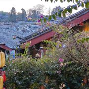 丽江古城又名大研镇,是茶马古道上有名的城镇之一,影视剧《一米阳光》、《木府风云》等都在此取过景。古城内木楼青瓦,古街石巷,小桥流水,站在古城东大街上,举头即可遥望玉龙雪山,景色十分秀丽。