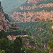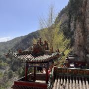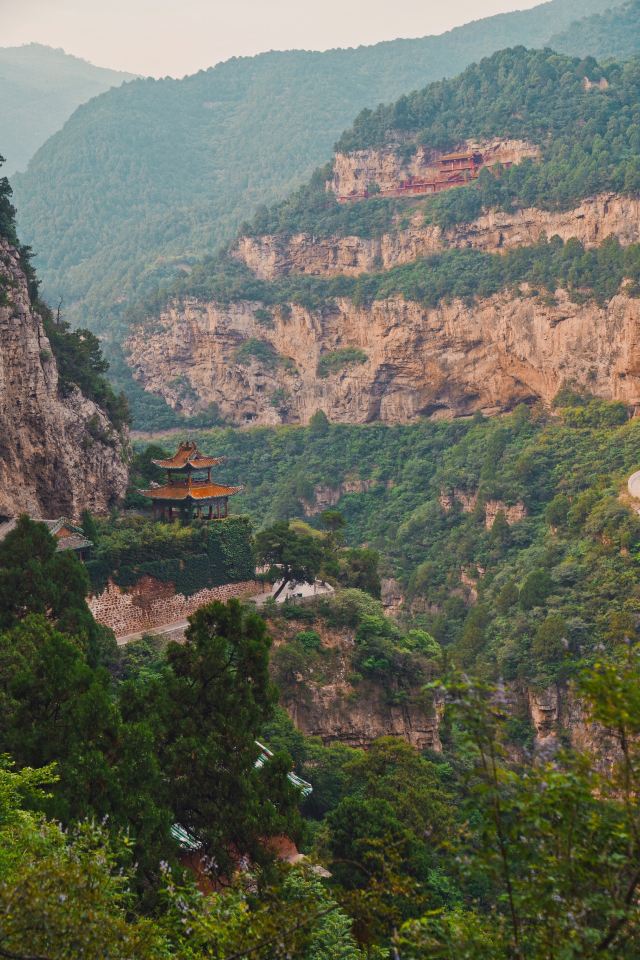 群山环绕的姑射山景区,宛若世外桃源,令人忘记久居城镇的烟火,忘情于这别有洞天的景色之中。驻足观赏峡谷两边的风景,只见庙宇庄严,鳞次栉比,亭台楼阁,雕梁画栋;群峰耸立,岩洞密布,白云飘飘,钟声悠扬;古木参天,飞鸟鸣啭,一幅自然天成、绝妙古朴的画卷,让人禁不住流连忘返,沉醉其间。这种由自然山水、古代建筑、峡谷绝壁所构成的景观,令人叹为观止。