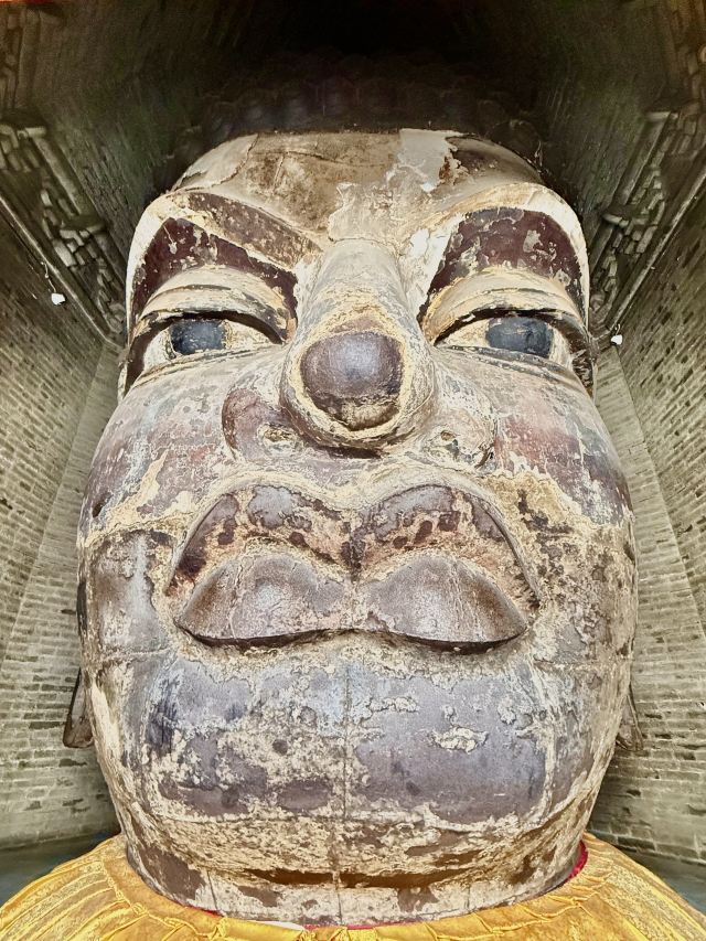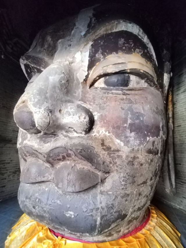 绕佛像一周,仔细观摩,佛像造型丰满,眉目端庄。佛头是实心的,纯精铁打造,焊接处平整光滑几不可辨,真钦佩古时匠人的技艺,现在各种先进工具辅助都不一定可以制作如此之精良。