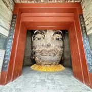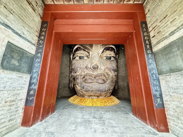 此地是先有佛头后有塔,佛教大朝--唐朝打造此佛头,向看寺的大姐请示,告知可以抚摸不得拍照。