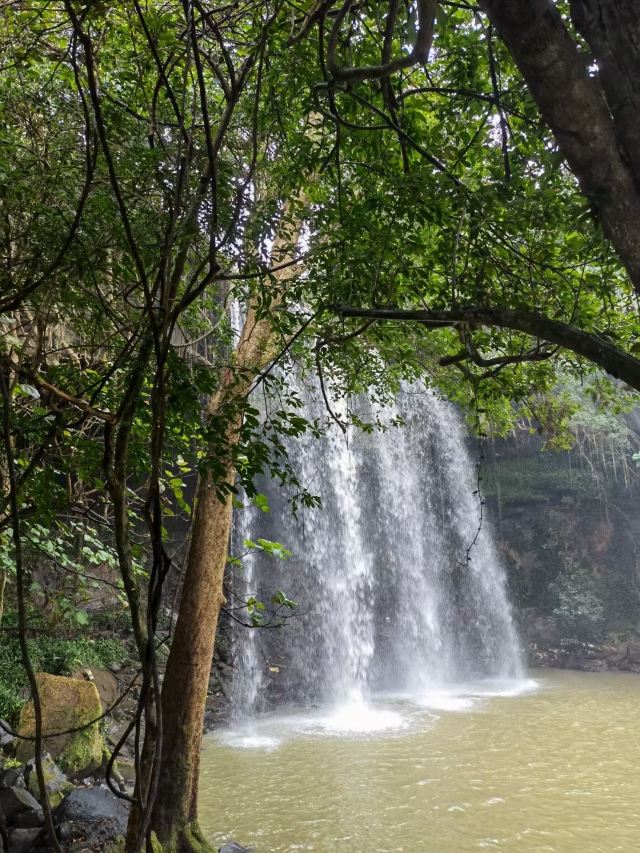 5分 超棒今年春节前在海南,游览了居仁瀑布。居仁瀑布位于海南临高县皇桐镇居仁村西部附近,在临高县城以东20公里左右,史称“古银瀑布”。景区停车场空空荡荡,从停车场沿着大路向右进入景区,走在湿漉漉的栈道上,两侧怪石林立,形状各异,千姿百态。树木茂密,盘根错节,奔腾的小河如脱缰的野马在雨林中穿行,还没有见到瀑布就被这热带雨林的景色惊艳了。栈道旁几棵巨大的无花果树,硕大的无花果顺手可得,但这属于这片雨林的世界,无人下手。路上还有一座人民公社水电站,告诉人们这里曾经的历史。栈道沿着奔腾的小河,我们在轰鸣水声的伴奏下来到瀑布近前,弥漫着植物芳香的水汽扑面而来。走到瀑布跟前,只见银白色的水流像老爷爷的白胡子,一缕一缕地倾泻下来。风吹过来,把水吹成轻雾洒在我脸上,凉丝丝的。水流好像有急事,匆匆地往下冲,水花四溅,如飞珠碎玉般晶莹可爱。瀑布四周雨林茂密,更显得史称“古银瀑布”名副其实。疫情解封不久,景区内游人寥寥无几与那天朦朦胧胧的天气更增添了几分神秘。我们去时,景区是免费的,只有离开时在停车场门口有个穿停车场工作服的人,手中举着一块二维码牌子收10元停车费。