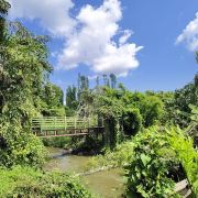 5分 超棒今年春节前在海南,游览了居仁瀑布。居仁瀑布位于海南临高县皇桐镇居仁村西部附近,在临高县城以东20公里左右,史称“古银瀑布”。景区停车场空空荡荡,从停车场沿着大路向右进入景区,走在湿漉漉的栈道上,两侧怪石林立,形状各异,千姿百态。树木茂密,盘根错节,奔腾的小河如脱缰的野马在雨林中穿行,还没有见到瀑布就被这热带雨林的景色惊艳了。疫情解封不久,景区内游人寥寥无几与那天朦朦胧胧的天气更增添了几分神秘。我们去时,景区是免费的,只有离开时在停车场门口有个穿停车场工作服的人,手中举着一块二维码牌子收10元停车费。