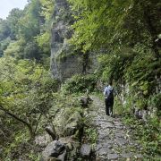 黄围山景区白陉古道指的是从磢底到十里河这一段保存较为完好的原始古道。这也是黄围山的一条知名风景线。之所以知名是不但有美丽的自然景观,而且有丰富的文化内涵。