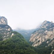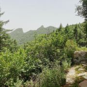 在酒店吃了个饭放了一下行李就准备去爬山,酒店老板很热情还是强烈推荐去的。五岳寨门票学生票很便宜差不多20。上了差不多1000米坐的滑道,超级害怕。我觉得客友们可以体验一下。上到了主峰就没再继续旁边的两座山走了,因为带了一个半大孩子。一路喊累。下山路很美的,虽然是阴天还是遮挡不住它的美。下山差不多用了一个小时。中间有个佛庙没去因为太累了还得爬。晚上很凉爽,五岳庄园的烧烤烤羊肉和奥尔良烤鸡翅还是很不错的!第二天睡醒八点拾掇了一下本来预计坐12点客车,但是老板说顺路可以把我们带到灵寿客运站,这样节省了两个小时的路程。很赞很赞,还去了一趟动物园。