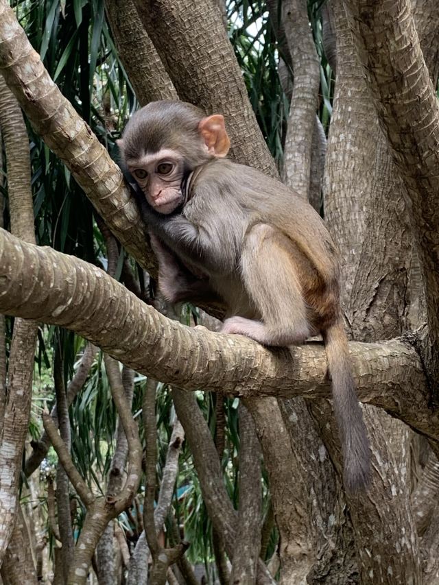 5分 超棒前些天去了南湾猴岛,游览了猴岛公园。我们是乘缆车进入猴岛的,缆车上风很大,但整个海湾尽收眼底,俯瞰海面上的鱼排,像一座漂浮在海面上的城市,非常壮观。刚刚下缆车进入公园,朋友用塑料袋装着的花生一不留神被两只猴子给抢走了。公园里猴子很多,不怕人且非常厉害,向游客诠释着岛主的身份,哪些出生不久的小猴们活波可爱,一个个在妈妈的监督下嬉戏打闹。猴岛公园不大,一个小时左右就可以走遍,里面有两个表演场,猴杂技表演场因疫情暂时停止演出了,只剩下滑稽搞笑表演,实际上就是耍猴的。门票+登岛缆车或船154元,儿童和60岁以上有优惠。出岛我们改乘船,却耽搁了很长时间,且没有意思。出岛乘船过海的路程只有200到300米左右,船一掉头就到了,但出公园后要先乘汽车到码头乘船,途中也没有什么可圈可点的景色,这汽车等了大约30分钟才来,要是乘缆车即俯瞰海湾和山景,又可以节省时间。如果不去呆呆岛,本人建议去猴岛公园往返都乘缆车。