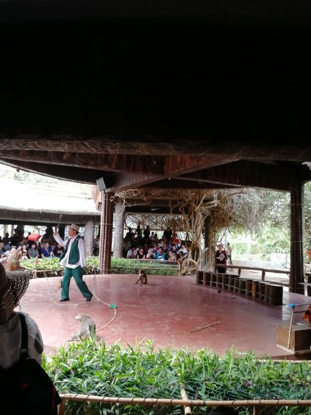 在猕猴杂技表演区可以看到充满“人性”的猕猴。在驯化师的带领下,表演各种高难度的杂技。继续前行,有一间猕猴王国拘留所,那是“关押”那些抢劫或者抓伤人后的猕猴,按照规定在这里关押一定的时间。在猕猴演艺场可以观赏一场经典的情景喜剧。