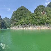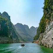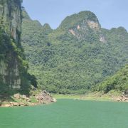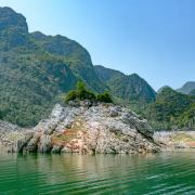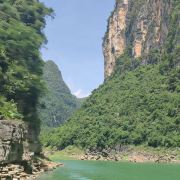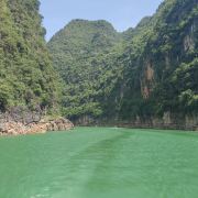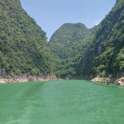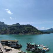 5分 超棒万峰湖还有一个称号,叫“小三峡”,乘船游历在湖面上,不时是波光浩渺的湖面,不时穿行在山峰相对峙的“河道”中,湖水绿的好像一颗宝石,而那山峰更是奇秀壮丽,此情此景,不由得让人想起长江三峡,“小三峡”的名号由此而来。游船经过水上石林的一角,自南向西划过一道弧线后右转向北进入小三峡。途径旅游码头时看到码头上游船不多,静静的停靠在岸边,多亏去了红椿码头。小三峡景点被称为万峰湖景点中,水位最深的地点,水上介绍沿着小三峡继续向北就是马岭河。在驶入小三峡景区时,两岸风景是那样令人心动,绿色中显得幽深致极。两岸如刀斧削过一样的严峻山壁,笔直地耸立于湖面上,峡谷最窄的地方,仅能过一条轮船,迷人的风景如同同长江三峡,青山悠悠绿水长流,让人逐渐沉迷在这幅山水画中。