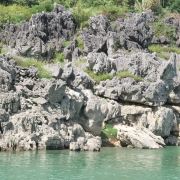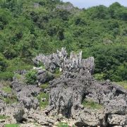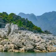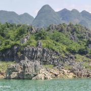 5分 超棒万峰湖沿岸峰林、石林、溶洞、天坑、森林密布,构成众多的景观景点。红椿水上石林是万峰湖的主要景观之一,这一带属于典型的喀斯特地貌,而这里的石林景观则是独有的水上石林景观。从红椿码头出发向北航行,不多时在船的左舷沿岸出现了怪石林立的景观,虽说石林与岸上岩壁颜色融为一体,远观不太明显,但也能辨别出水面上一座座,一丛丛石林景观。在游船的前进方向的岸边也依稀可见丛丛石林。万峰湖水上石林分布在湖畔,小而秀美,与那山峰遥相辉映,彰显着自己独特的魅力。放眼望去,万峰湖畔的石林星罗棋布、千姿百态,这独特的自然景观使人震惊,让人流连忘返。