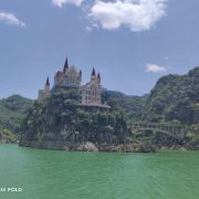 5分 超棒来到万峰湖,有种误闯天鹅湖的奇特感受,其不同之处则是,这是一座红色的复古城堡。远远地望去,只见在湖中一座城堡耸立在礁石之上,加之这壮丽秀美的山水风光,宛若童话世界般,让人悠然向往,这就是吉隆堡。吉隆堡其实是一家综合度假村,若是到内部参观需要购买门票,60元每人,虽然门票有点小贵,但也不乏游客的慕名而来,毕竟可以拍出充满童话气息的照片。在吉隆堡对面有一个出水口,如瀑布般向万峰湖倾泻着裹带着泥沙的黄水,在万峰湖上形成泾渭分明的景观。游船的船员介绍说这是马岭河二级电站的出水口,在游览万峰湖后沿着景湖大道去泥凼石林的路上,经过吉隆堡度假村大门,也没有看到有河流,难道这是地下暗河?