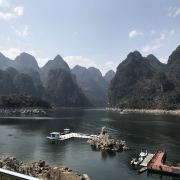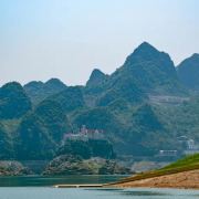 5分 超棒万峰湖的前身是桀骜不驯的南盘江,在1991年时,因修建天生桥水电站,高坝建成后,使得江水被水电站拦腰截断,由此而形成了这碧波万顷的万峰湖。作为国家重点水电工程,天生桥水电站完美解决了大西南地区的用电问题,也由此而促进了广西、云南、贵州等省份的经济发展。万峰湖因处于万千峰林之中而得名,它的规模十分庞大。相当于2个大理洱海17个清镇红枫湖,76个杭州西湖。万峰湖蓄水108亿立方米,水面达816平方公里,是 “ 珠江三角 ” 经济区的重要水源。不仅如此,万峰湖还有这秀丽壮美的自然风光,其水质也是十分优异,水体透明度高达2米以上,湖面波光浩渺、湖畔是丛丛雄壮的峰林,其美丽的景观一年四季皆适合游览。到万峰湖游玩,最主要的游玩方式即乘船,其实景区并不收取门票,若是乘船游览,只需要购买船票即可,成人60元每人,价格不贵。乘船从红椿码头出发,沿途会经过水上石林、小三峡、水破山门及吉隆堡等景点,往返大约90分钟,对我来说,似乎并不太过瘾,毕竟眼前的景色实在是太壮观秀丽了。之前也曾领略过许多地方的山水风光,对于自然山水也是无比的热爱,尤其是这充满野趣的山水美景之地,而万峰湖正是这样的地方,又怎令人不心动呢。万峰湖以自然风光为主,也融入了点滴的人文景观,其中最壮观的当属那藏于湖中的古堡建筑,它的名字也非常大气,叫“吉隆堡”。在万峰湖的深处,拨开万重山峰之后,就会看到隐藏在峰群中孤独的城堡,整座城堡伫立在一个湖心小岛上,嶙峋的山体承载了一个欧式城堡,尖塔式的房顶,红色的砖瓦在碧绿的万峰湖中尤为突出,第一眼看去有点像天鹅堡的造型,不同的是这是一座红色的复古城堡。但其实这座城堡是一个度假酒店,据说进入城堡参观要买60元/人的门票。说是孤独的城堡也没有错,只有一条连接岸边的拱桥可以通往城堡,周边全是静悄悄的山峰,城堡的寂寞倒影在湖水上停留,荡漾的涟漪使得城堡的影子变得模糊,才有一刻打破了城堡的孤独氛围。