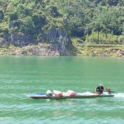 5分 超棒清早,从兴义市区内住的酒店自驾50余公里,用时近1个小时到达万峰湖景区红椿1号码头,一路上山青水秀美景如画。到达码头见一艘游船刚刚驶离码头,为了节省时间请工作人员将船叫回来,工作人员安慰我们说红椿1号码头是景区内最大的,按时开船,再过二十几分钟11:28分还有一班,准点开船,耽误不了时间。我们二人买了船票(60元/人),在候船的时间,向我们详细讲解了万峰湖景区。当我们登上游船,偌大的游船只有我们两位游客,到点汽笛长鸣,游船驶离码头,但我心中感到愧对这条大船和水手,兴义景区美景和服务给我留下美好与深刻的印象。万峰湖景区位于黔西南自治州兴义市的东南,坐落于马岭河下游,是兴义国家地质公园的成员景区、国家4A级风景名胜区,与国家级景区万峰林、马岭河峡谷相邻,万峰湖因万峰环绕而得名,是云贵高原上的一颗平湖明珠,享有“ 万峰之湖,西南之最,南国风光,山水画卷 ”之美誉。美景、柔水也养育了热情好客,诚恳善良的兴义人。游览万峰湖最好是自驾,公共交通不太方便:乘游船最好在红椿1号码头,码头有停车场,其他码头的停车场距离码头有一段距离:红椿码头船票60元/人,其他码头80-100元/人,游览线略有区别。