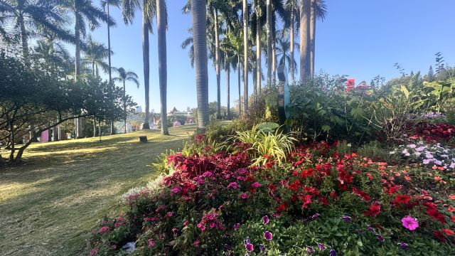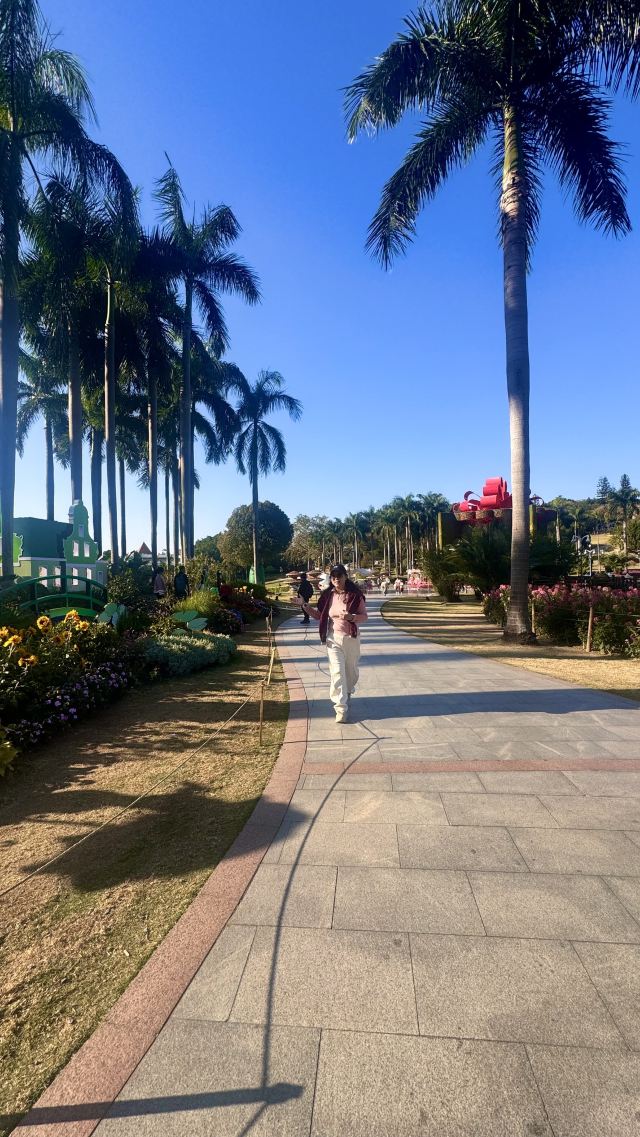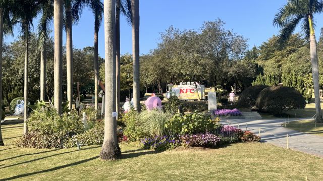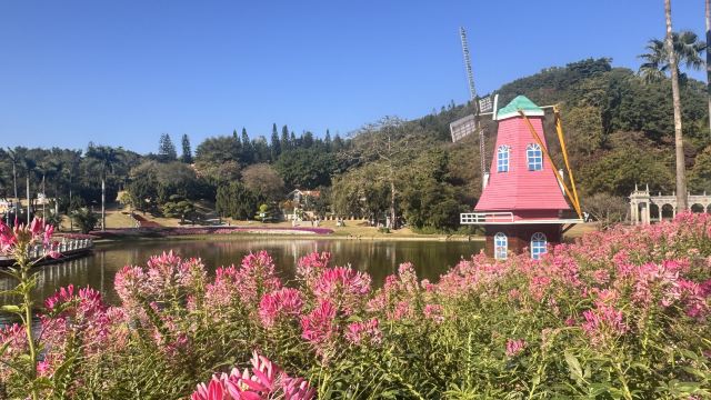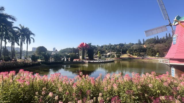 罗马柱廊映着繁花,玫瑰园的暗香缠上衣角,风车的倒影在碧波里轻轻摇晃。中西园林的韵致在此相融,四季花事不断,风过处,满是岭南的温润与浪漫。