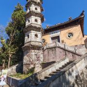 巾山-龙兴寺,在临海城内巾山西麓。始建于唐神龙元年(705年),初名“神龙寺”。二年(706年),改名“中兴”。景龙三年(709年),复改名“龙兴”。开元二十六年(738年),又改名“开元”。巾山-龙兴寺入口的牌坊上写着“神龙古刹”便是此意。屈指算来,巾山-龙兴寺距今已有近1300年的历史。该寺在抗战时期即被毁坏,仅留始建于唐代的龙兴寺-千佛塔,而该塔是省级文物保护单位。