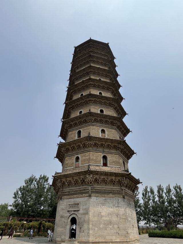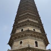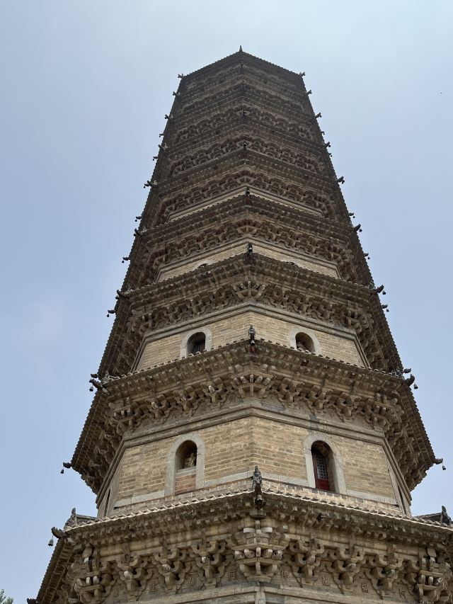 我上过临清塔,第3层是在外面上到4层,第6层是在外面上到7层,其他的都在里面上楼梯,9层最高处在塔顶垂下来半截木柱,3米左右长,悬空的。