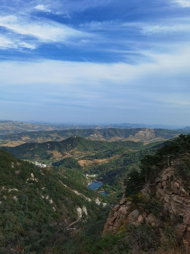 海拔971米的歪头崮是沂山第四高峰,登上崮顶的长春亭,这里三面绝壁,放眼望去,沂山山脉纵横起伏尽收眼底,这儿也是赏日出的佳处。从歪头崮停车点通往歪头崮的步道途中,会见到不少摩崖造像,还可观狮子崮、拜灵官殿、访碧霞祠。