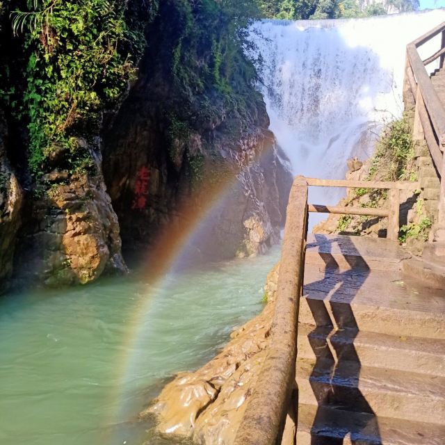 飞瀑正对景区大门,仿佛起舞的仙女,迎接四海宾朋,故名飞瀑迎宾。