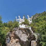 莲花山位于临夏康乐县与甘南临潭县交界处,俗称“西崆峒”,是佛教与道教共有的圣地。全山由石灰岩构成,呈鳞形断层,尖峰乱耸,形似莲瓣,中顶平圆,状如莲蕊,因山峰酷似正在绽放的九瓣莲花而得名。