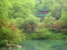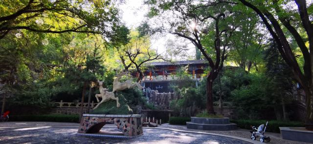 园内峰峦叠嶂,树木葱茏,花草林木繁茂,自然景色和人文景观交相辉映。