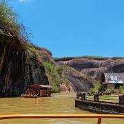 可乘坐翠江游船,体验6公里水路,置身碧水丹霞中,可以欣赏到狮子山、鲤鱼戏水、千年悬棺、神仙寨、铁鼎寨等美景,如诗如画。