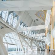 内外通透并富有力量感的壳体让整个建筑外立面的虚实变化成为可能,从建筑底部的“不透”逐渐过渡到顶部的“全透”,配上“雪山白”的选色,将原本具象的穹顶造型抽象化。这样既达到了建筑的整体效果更呈现出重型钢结构的雄浑魅力与不朽气息,建筑和结构浑然一体,独特、美观且具有很强的视觉冲击力,充分体现了自然和谐之美。