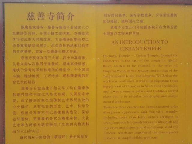 慈禅寺石窟现保存有三大窟,四十余尊造像,南北两大窟主佛均高4.5米以上,所存造像栩栩如生,工巧绝妙,时代风格鲜明,是隋唐寺院佛教艺术精品之作。