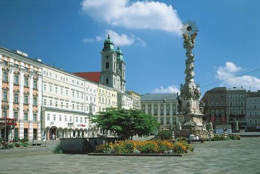 林茨中央广场建于1230年,周围有许多巴洛克风格的建筑以及文艺复兴时期风格的建筑,这里也是当地标志性的地方。在广场中央矗立着一个大理石纪念碑,为感谢上帝让林茨免于战争、火灾和瘟疫而建,富有宗教意味。平时这里人来人往比较热闹,多瑙河畔也在这里不远处。