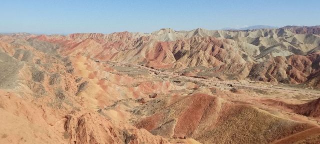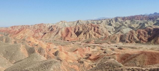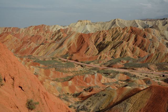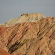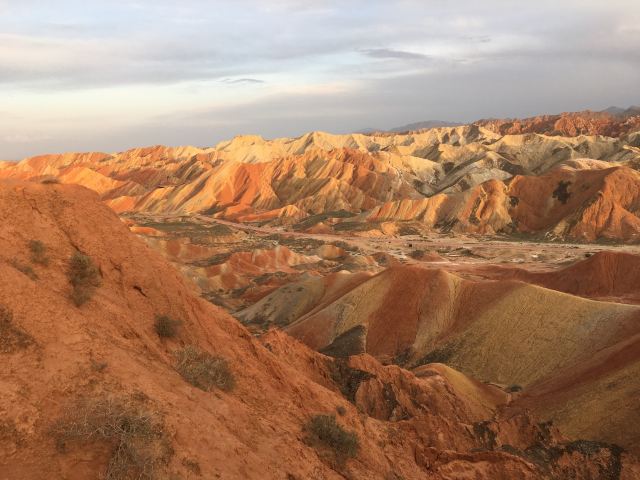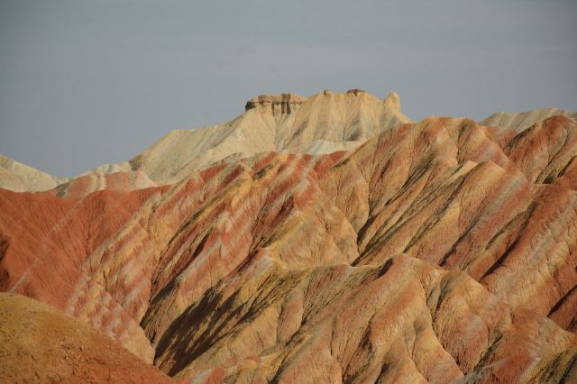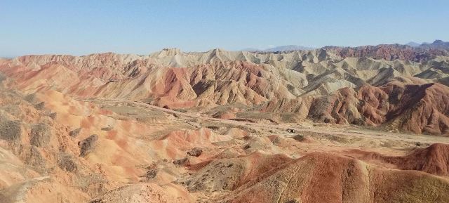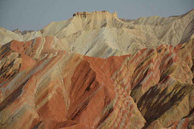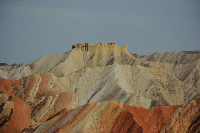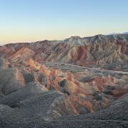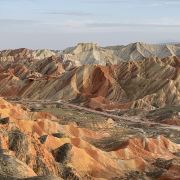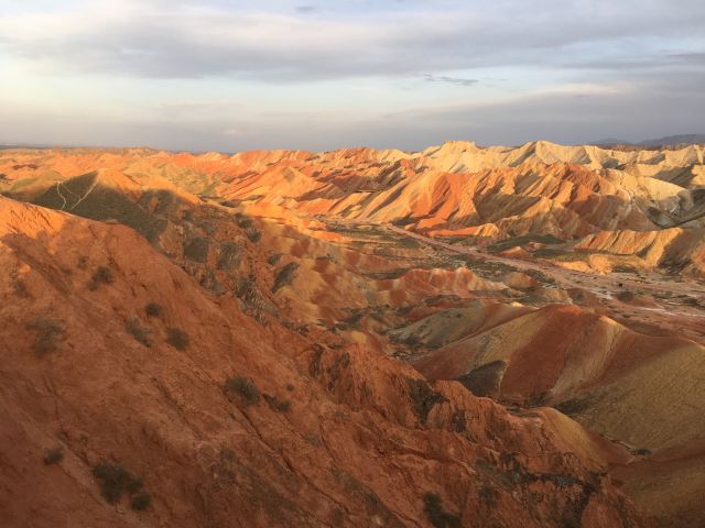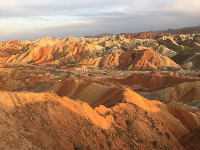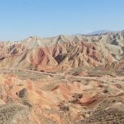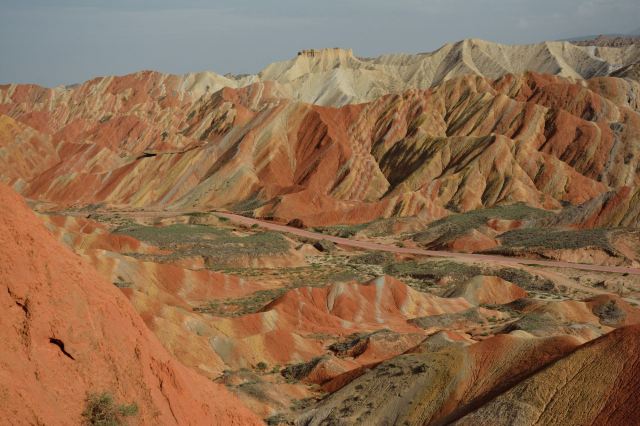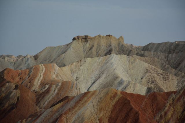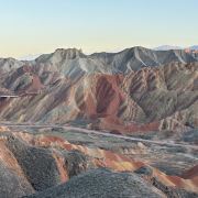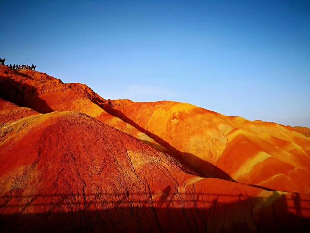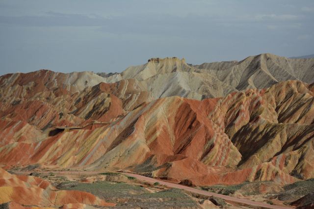 5分 超棒小布达拉宫。在张掖七彩丹霞4号观景台,当沿着栈道登上山顶向前方遥望,有一处景观酷似远观布达拉宫。那天我们是下午6点开始沿着栈道登上4号观景台,人很多,用了近30分钟才龟速到达观景台山顶,面向丹霞群山,景色震撼,面对着小布达拉宫壮美景色,在寒风中等待日落时的美景。如果是第一次见到这种地貌,大多会震撼。各种颜色,分界清晰,条纹层叠,有的如屏风,有的如五花肉,有的红成了一片,在棱角分明,怪石嶙峋的远处形成了刀山火海。如果这些景观是人为的还罢了,偏偏它是自然形成的,你会由衷地感叹大自然的神奇,鬼斧神工,巧夺天工。