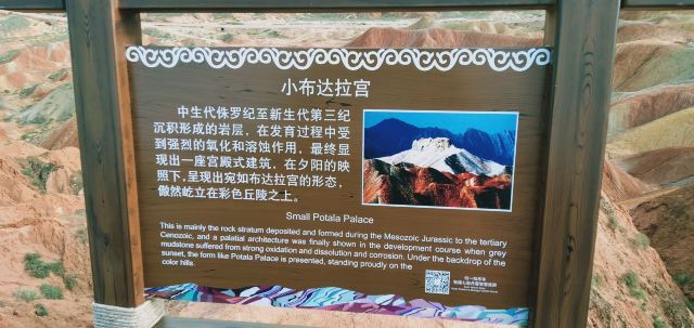 4分 满意小布达拉宫位于张掖市临泽县倪家营乡南台村七彩丹霞旅游景区内,在五号观景台也是最后的那个观景台旁边的小山上眺望远方,有一个外观造型比较像布达拉宫的山体,颜色也是比较突出的。