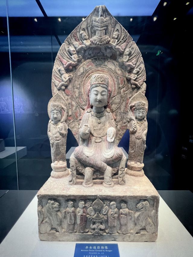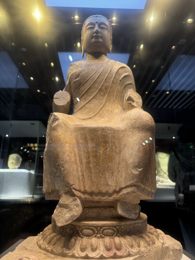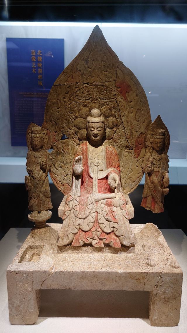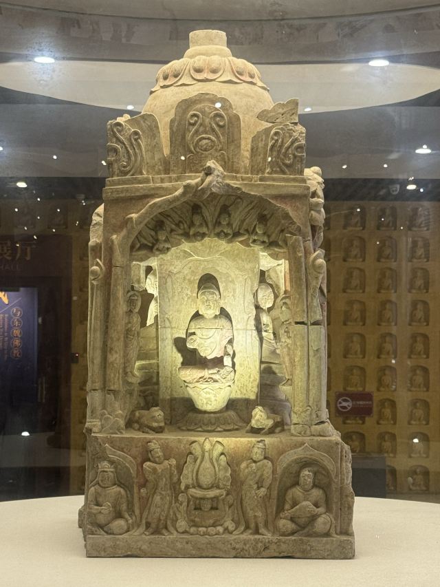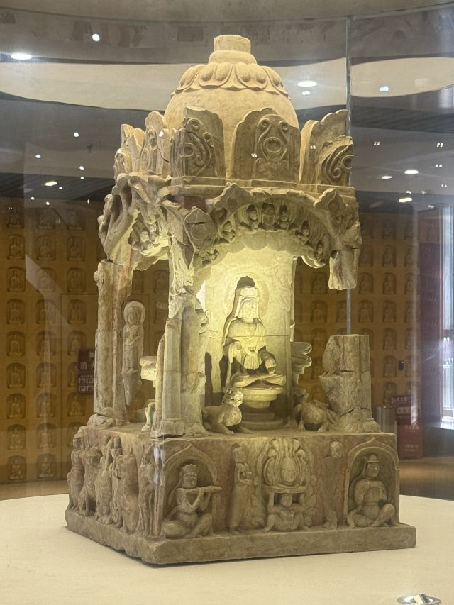 2.一层正中间进门有一国宝不要错过,可惜拍照效果一般,二层有南响堂山第7窟的外部复原,没有去南响堂的可以驻足感受下